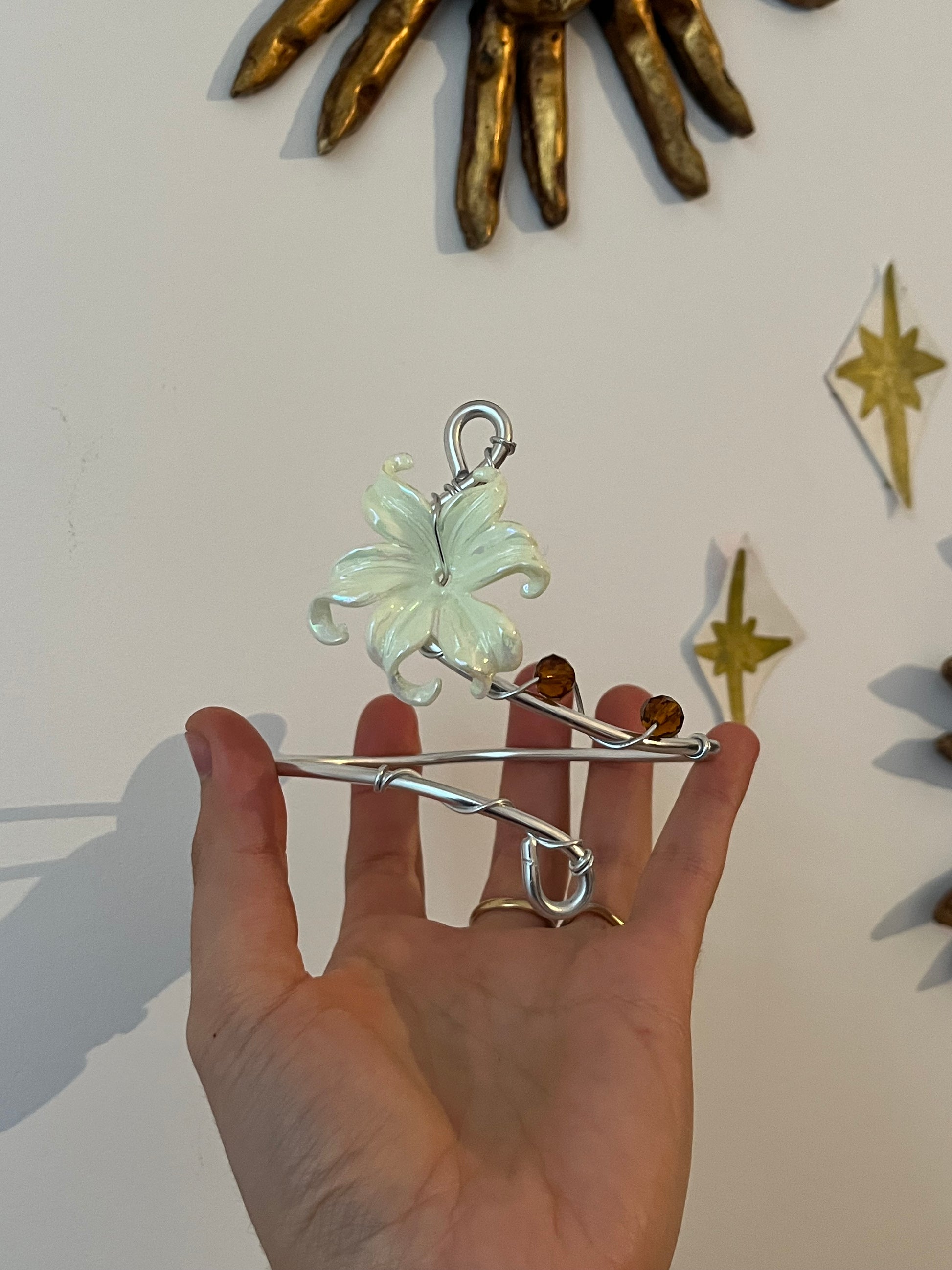 armcuff flower silver colour beads