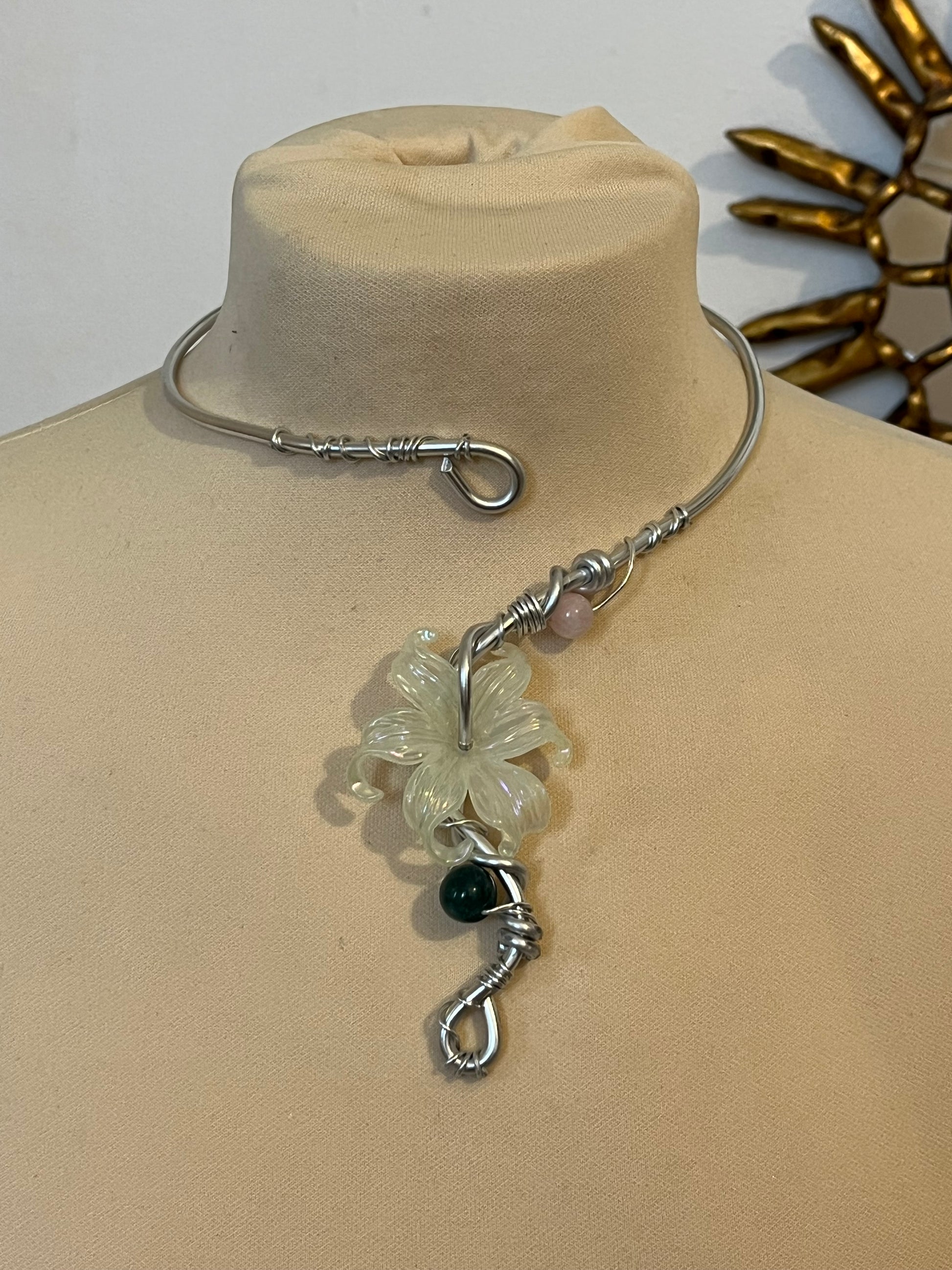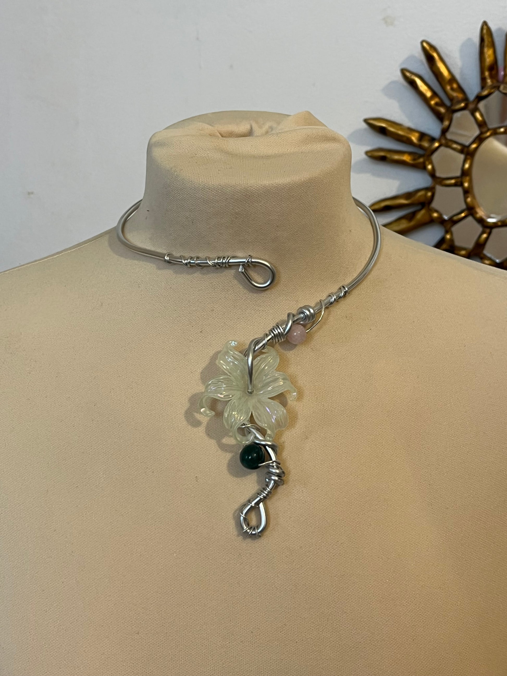 necklace silver colour green flower beads